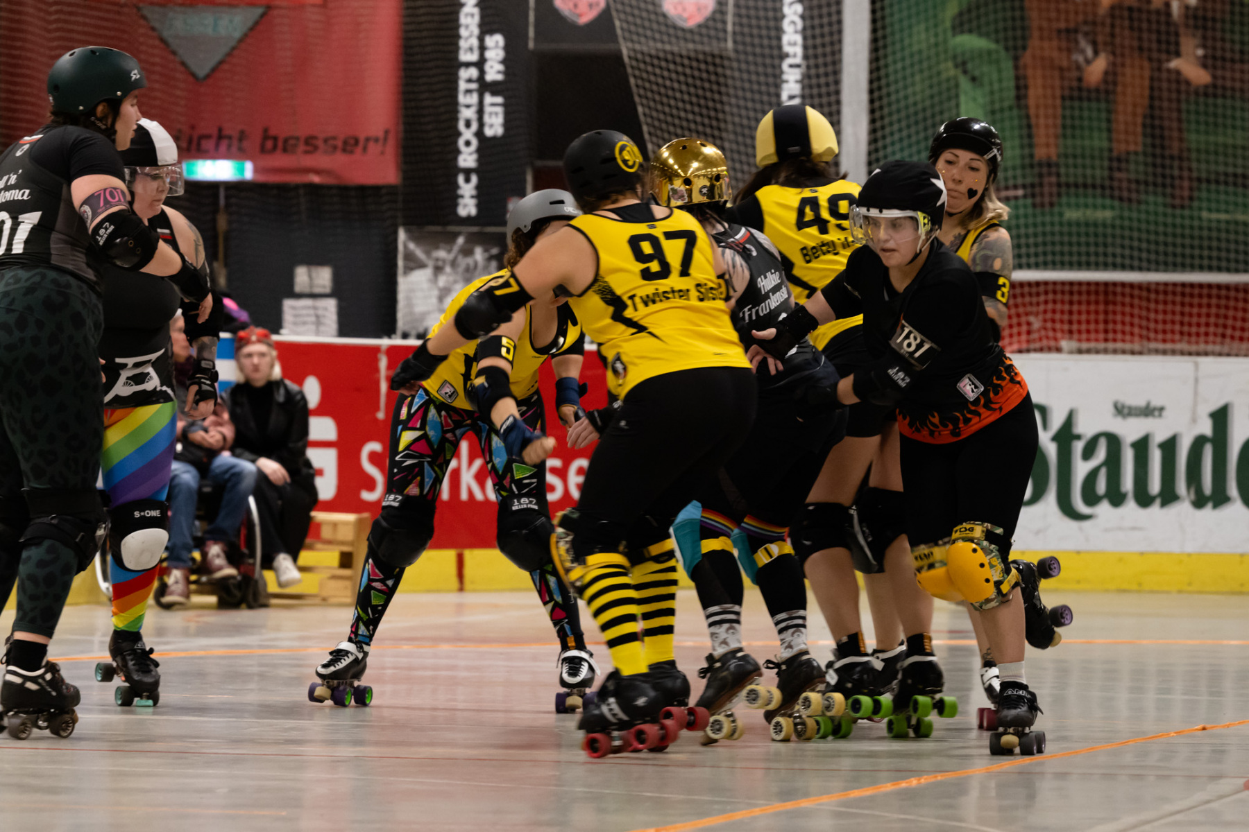 Heute, am 29.10.2023, war es wieder soweit und so standen sich die Spieler:innen von Ruhrpott Roller Derby und RovkARollers – Rollerderby Karlsruhe im letzten Bundesliga-Heimspiel der Spieler:innen aus Essen gegenüber.