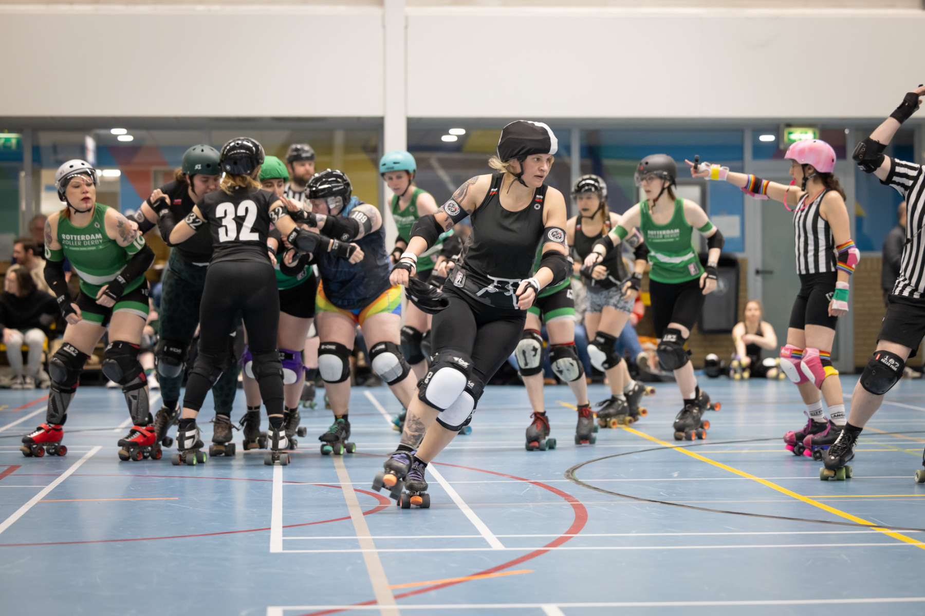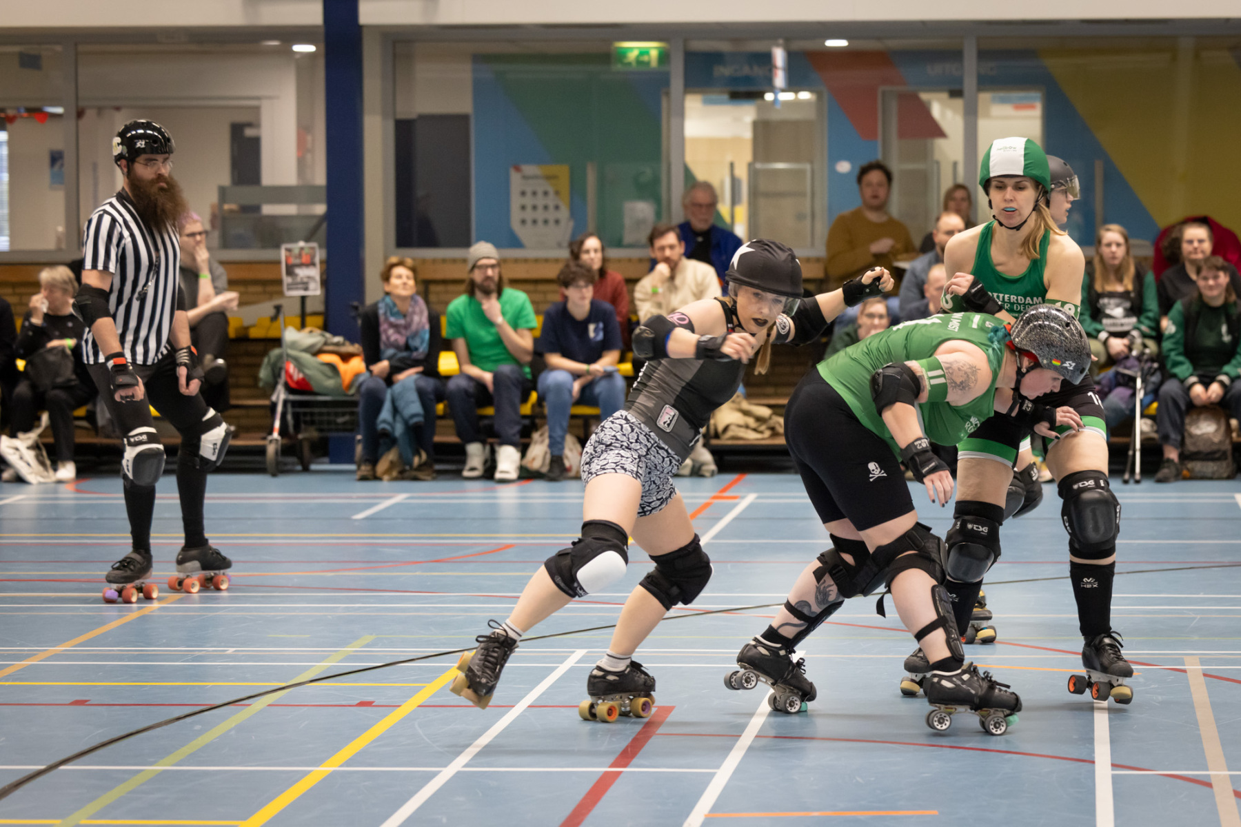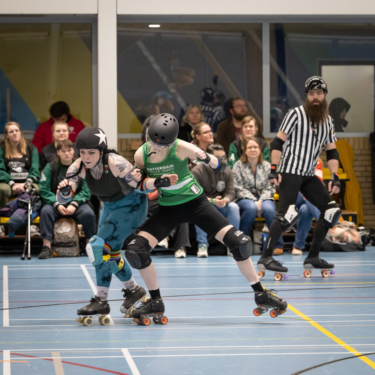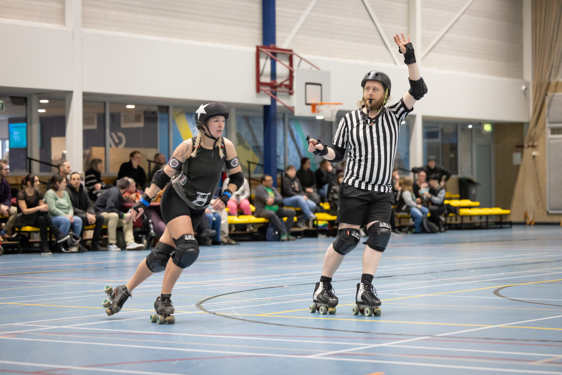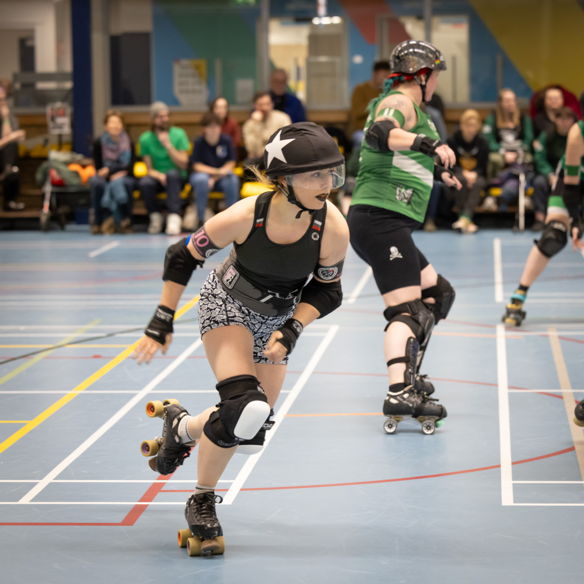 Heute, am 29.10.2023, war es wieder soweit und so standen sich die Spieler:innen von Ruhrpott Roller Derby und RovkARollers – Rollerderby Karlsruhe im letzten Bundesliga-Heimspiel der Spieler:innen aus Essen gegenüber.