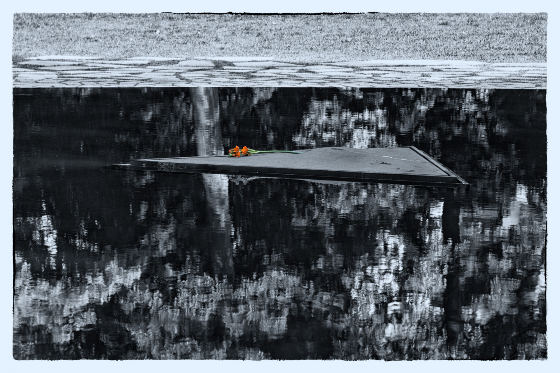 Niedergelegte Blume an der Sinti und Roma Gedenkstätte
